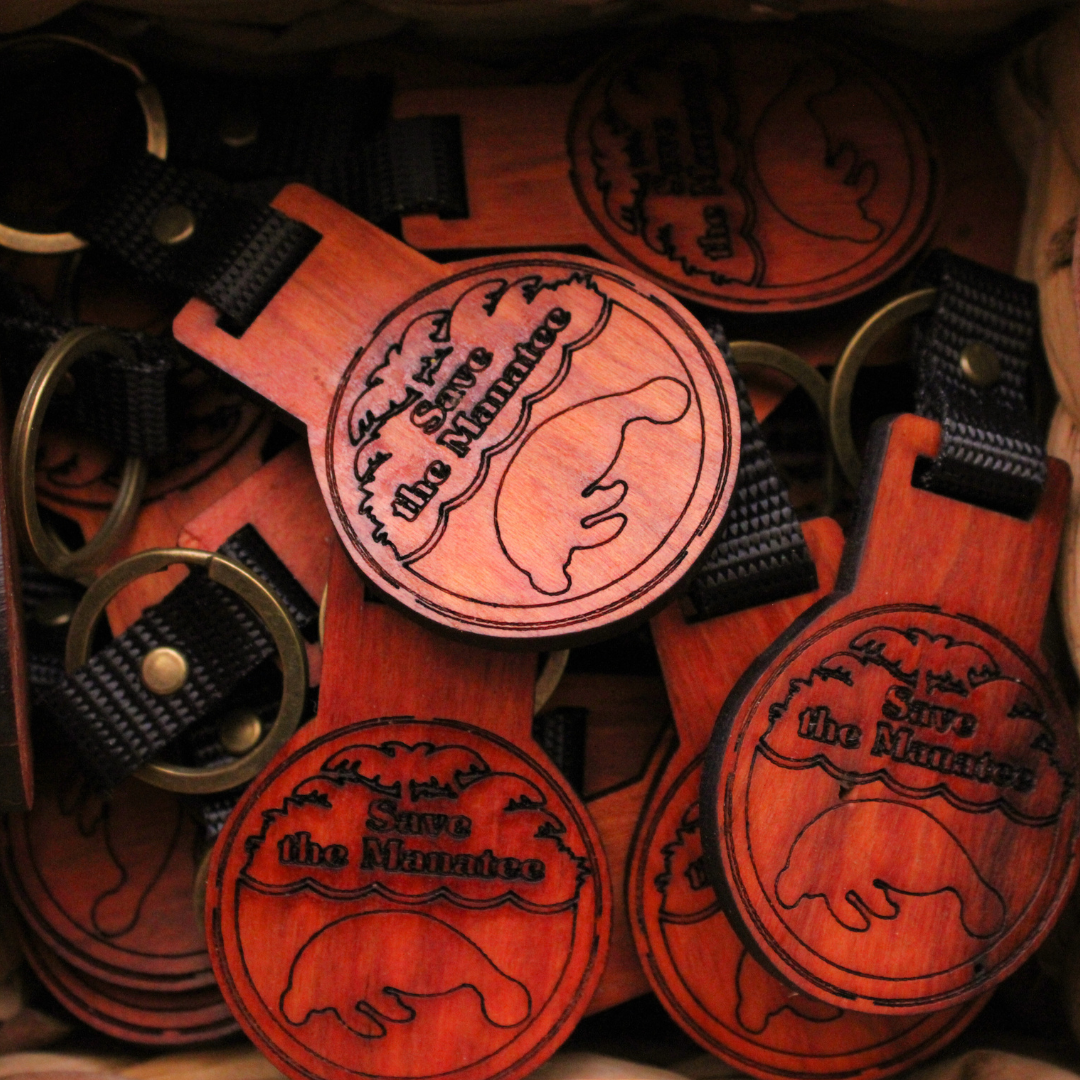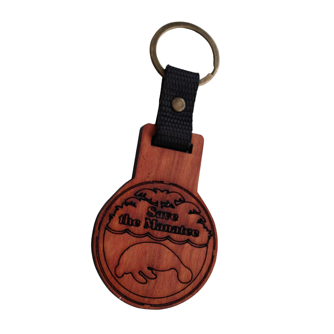 Carry a reminder of manatee conservation wherever you go with this sustainably crafted wooden keychain. Made from responsibly harvested cherry wood, it features Save the Manatee Club’s logo engraved into the smooth surface. A durable nylon strap connects the charm to a sturdy metal ring for easy attachment. The charm measures approximately 1.75" wide, with an overall length of about 4.5". A practical and meaningful accessory for everyday use.