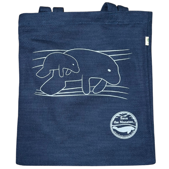Designed and printed exclusively for Save the Manatee Club, this cute navy tote bag is very versatile. Use it to carry your tablet or laptop, toys and more for the kids, things for a fun beach outing or an overnight stay. Also makes a great re-usable shopping bag.