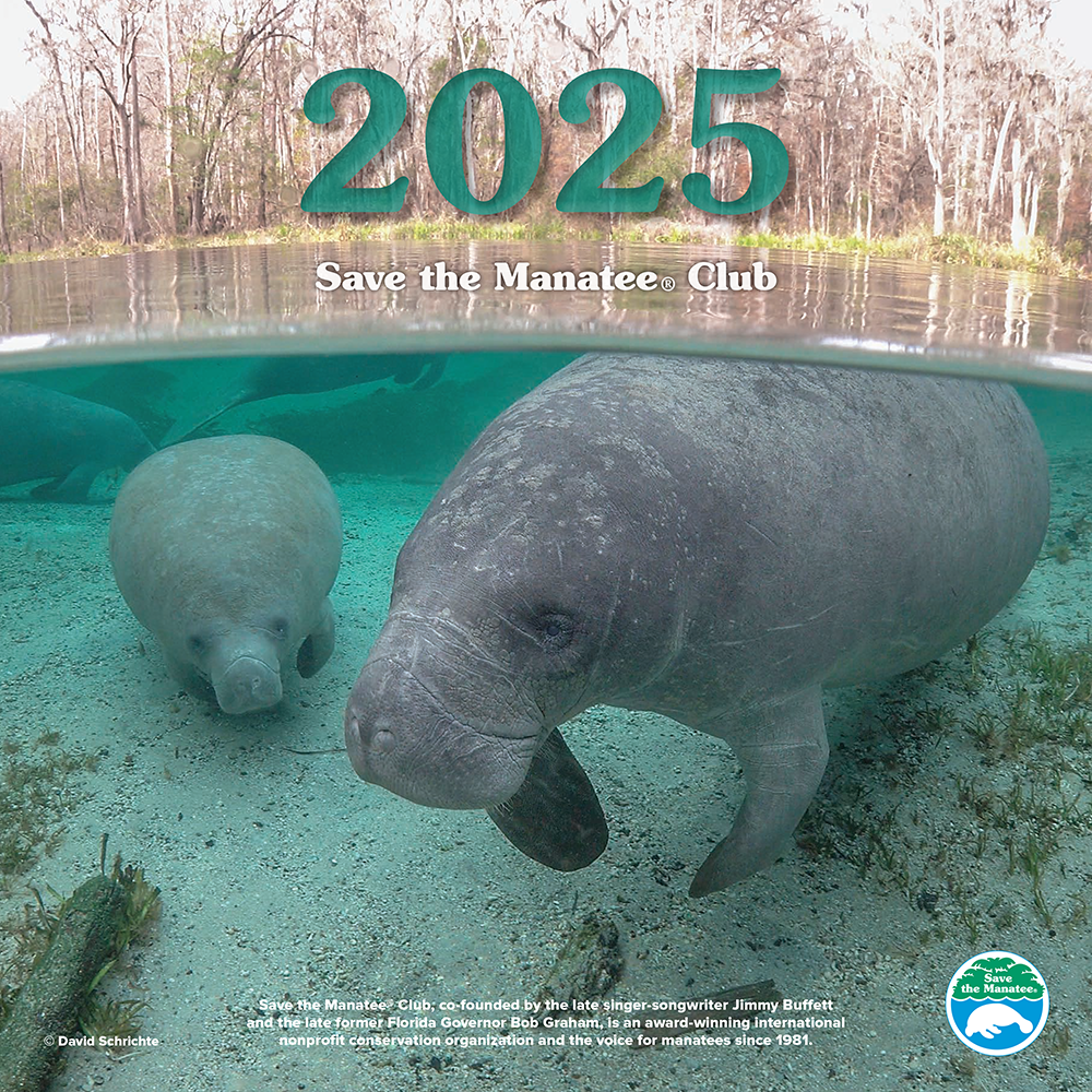 This fabulous calendar is filled with beautiful underwater photos of manatees for every month of the year. Photos used in this calendar were graciously donated by their photographers for Save the Manatee Club's use. There is also a special message inside from our Executive Director, Patrick Rose, and a discount code for 20% off your next purchase from our online store. Measures 12" x 24" when open.
